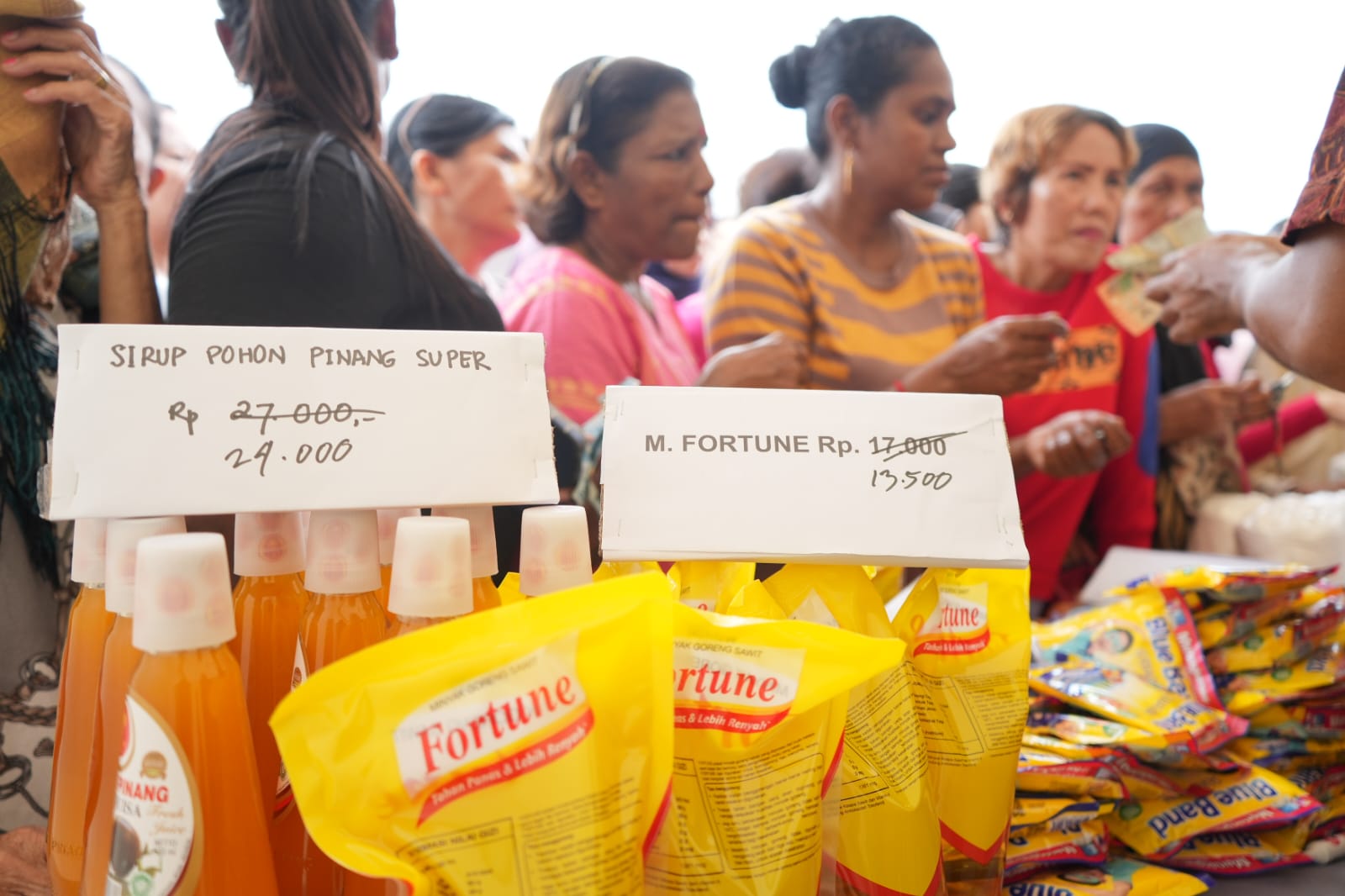 Adapun harga barang yang ditawarkan di pasar murah tersebut yakni beras Rp.10.800/kg, tepung Rp.8.000/kg, telur Rp.1.200/butir, gula pasir Rp.14.000/kg. Selain itu, margarin blueband Rp.10.500/pcs, minyak goreng Fortune Rp. 13.500/liter dan sirup Pohon Pinang Super Rp. 24.000/botol.