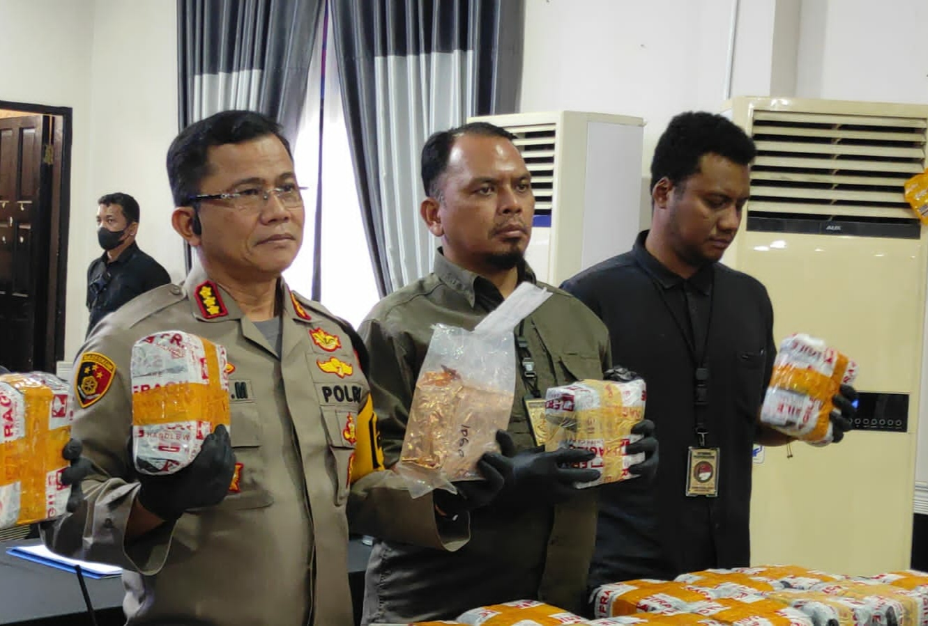 “Narkotika ini berasal dari Malaysia. Awalnya kami mendapat informasi bahwasanya ada pengiriman narkotika menggunakan mobil. Kemudian kami lakukan pengejaran dan pelaku berhasil kami amankan,” papar Teddy.