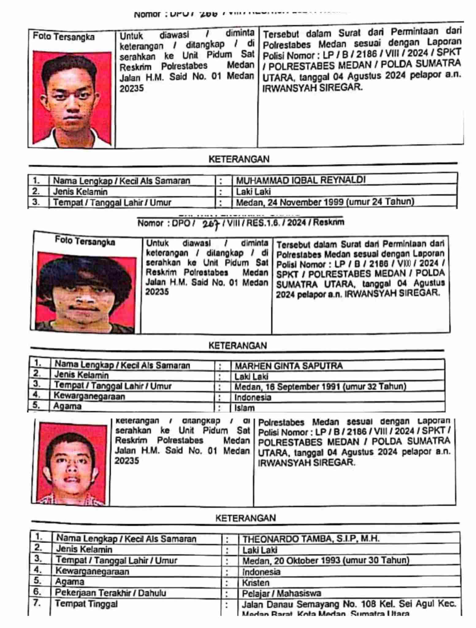 Kapolrestabes Medan Kombes Pol Teddy Marbun, Senin (2/9/2024) mengatakan proses penyidikan dan penyelidikan masih berlangsung, ketiga tersangka saat ini dalam status DPO.