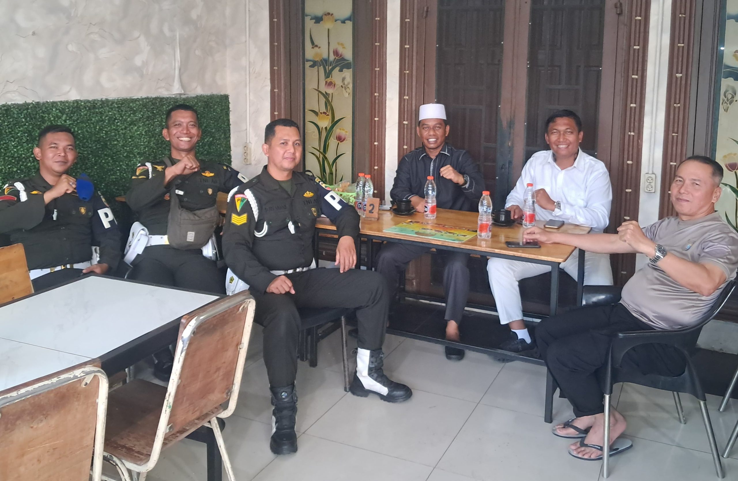 MEDAN — Dansub Denpom I/5-1 Belawan Lettu CPM Pebruari P. Tobing bersama Kapolsek Belawan AKP Ponijo dan tokoh masyarakat menggelar pertemuan membahas upaya menjaga keamanan dan kedamaian di Belawan, Sabtu (18/4/2026).
