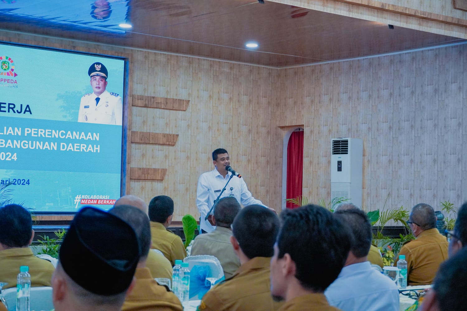 Demikian arahan yang disampaikan Wali Kota Medan Bobby Nasution saat membuka Rapat Kerja Koordinasi Pengendalian Perencanaan dan Pelaksanaan Pembangunan Daerah Tahun 2024 di Gedung PKK Kota Medan, Jalan Rotan Proyek, Medan Petisah, Senin (12/2//2024).
