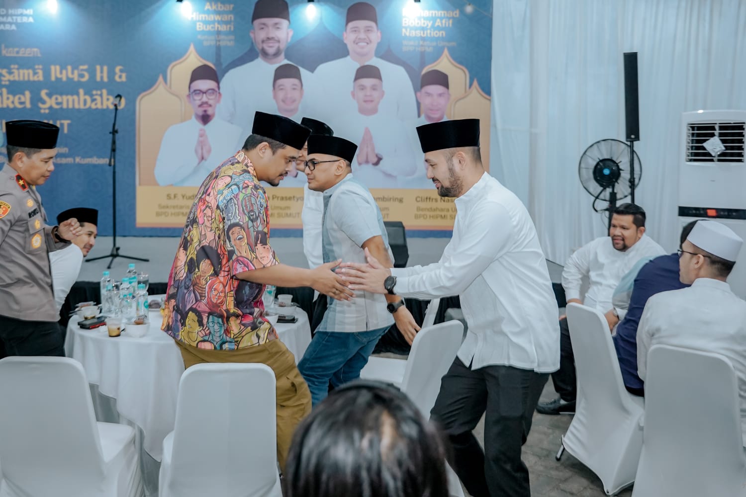 MEDAN l Jelang berakhirnya bulan suci Ramadan 1445 H, Wali Kota Medan Bobby Nasution buka puasa bersama Badan Pengurus Daerah Himpunan Pengusaha Muda Indonesia (BPD HIPMI) Sumut di Masjid Al Muslimin Jalan Bunga Raya Kecamatan Medan Selayang, Minggu (7/4/2024).