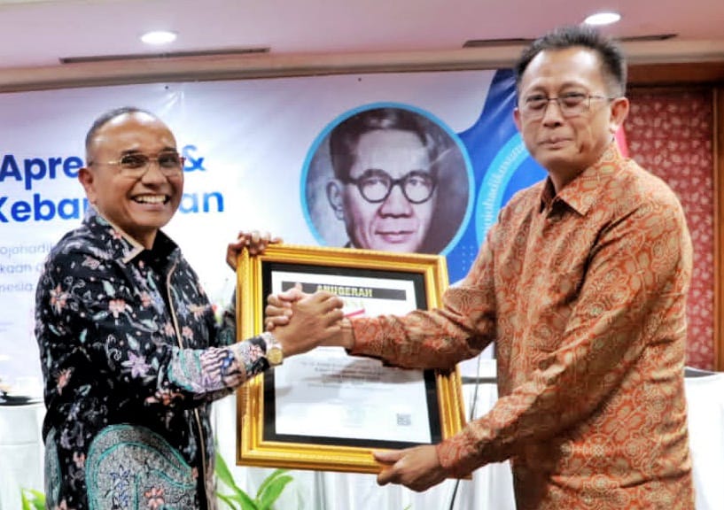 Penghargaan diserahkan langsung oleh Wakil Ketua Dewan Pers, Totok Suryanto, didampingi Ketua Umum SMSI Pusat Firdaus, dan Sekretaris Jenderal SMSI.