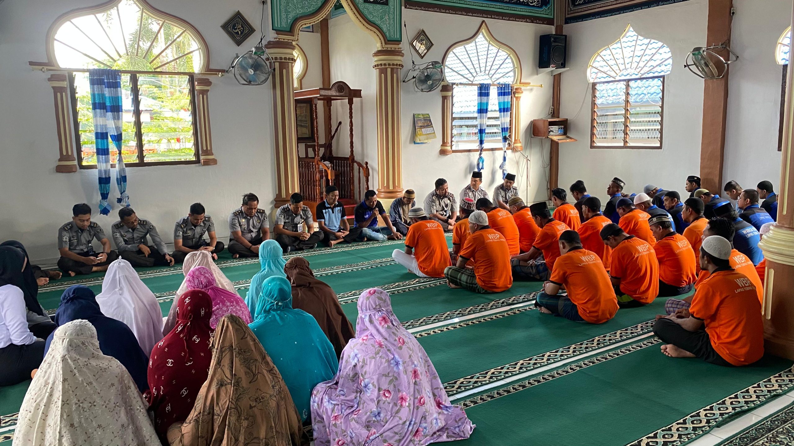 Di Masjid, lantunan ayat suci Al-Qur’an dan dzikir mengiringi doa bersama pegawai dan WBP muslim.