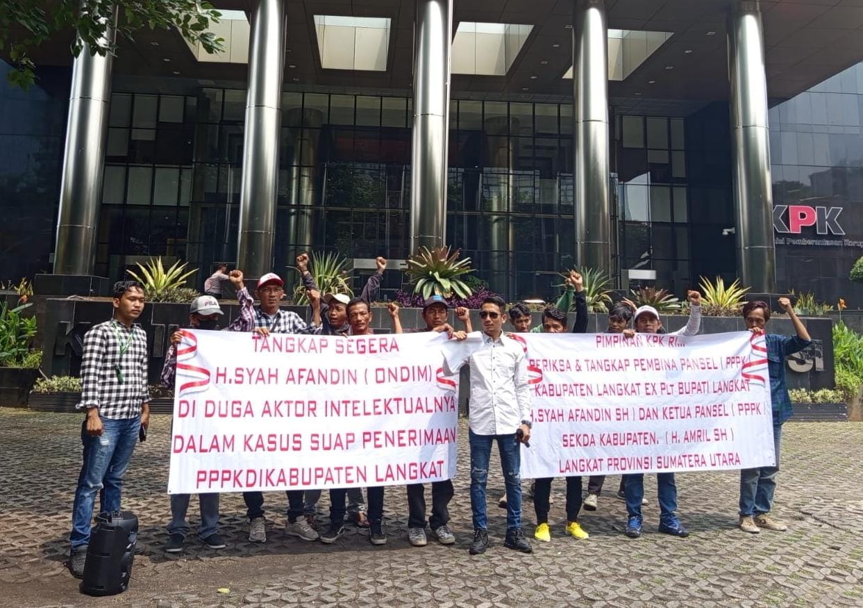 “Kami meminta kepada KPK RI untuk turun ke Kabupaten Langkat dan memeriksa mantan Plt Bupati Langkat atas dugaan keterlibatan dan atau menerima upeti atas pertambangan galian C non logam yang diduga tidak memiliki izin dan dapat beroperasi dengan nyaman. Kami juga meminta kepada KPK RI untuk segera turun ke Kabupaten Langkat dikarenakan Kabupaten Langkat darurat korupsi dan dugaan penyalahgunaan jabatan serta kehidupan guru-guru di Kabupaten Langkat sangat menyedihkan,” tandasnya. (FD)