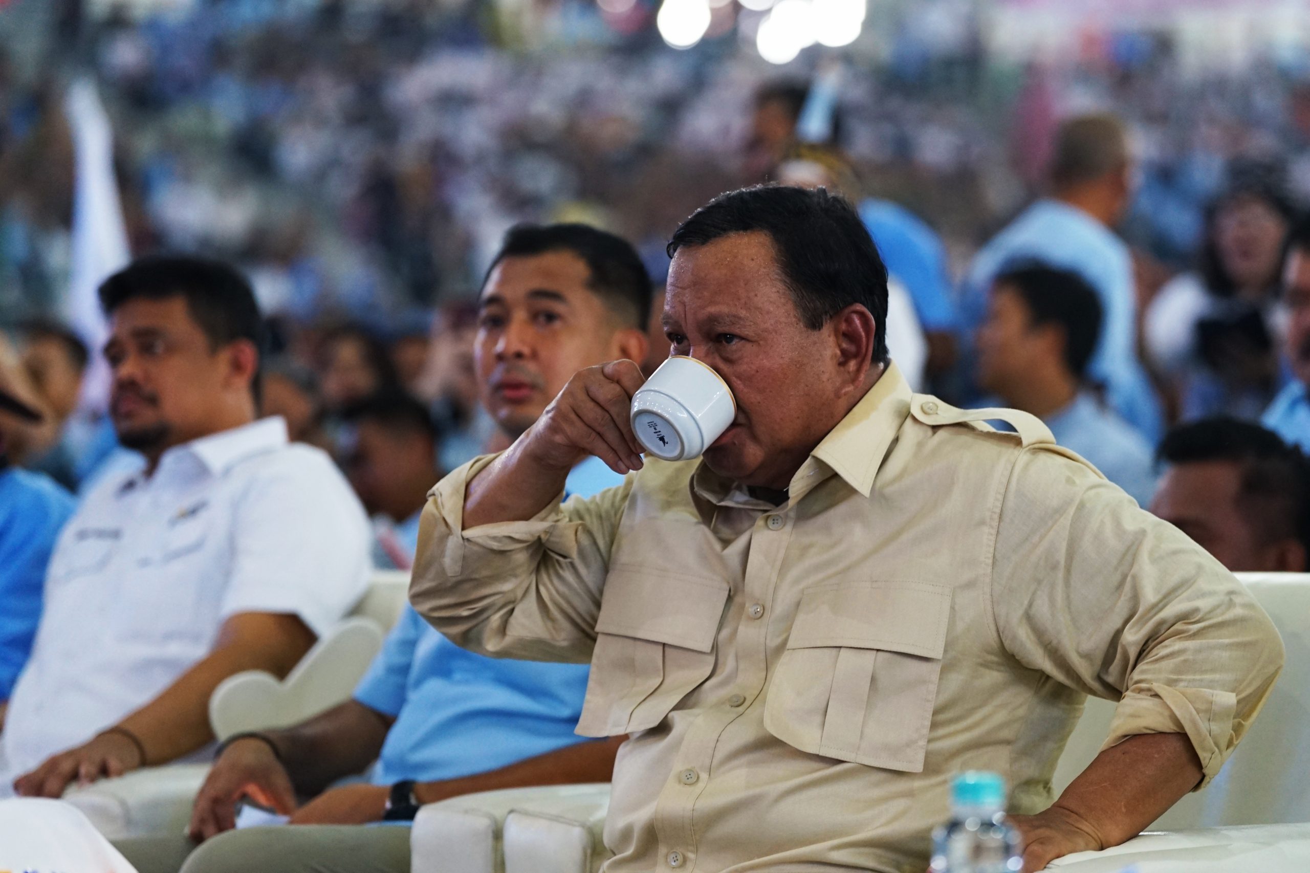 Hal ini terlihat saat melakukan kampanye di Sumatera Utara, tepatnya di Gedung Serba Guna, Jalan Pancing, Deliserdang, Sumatera Utara, Sabtu (13/1/2024). Di tengah menyampaikan pidato politik dihadapan para pendukung setianya, Prabowo merasa haus dan permisi untuk minum sejenak.