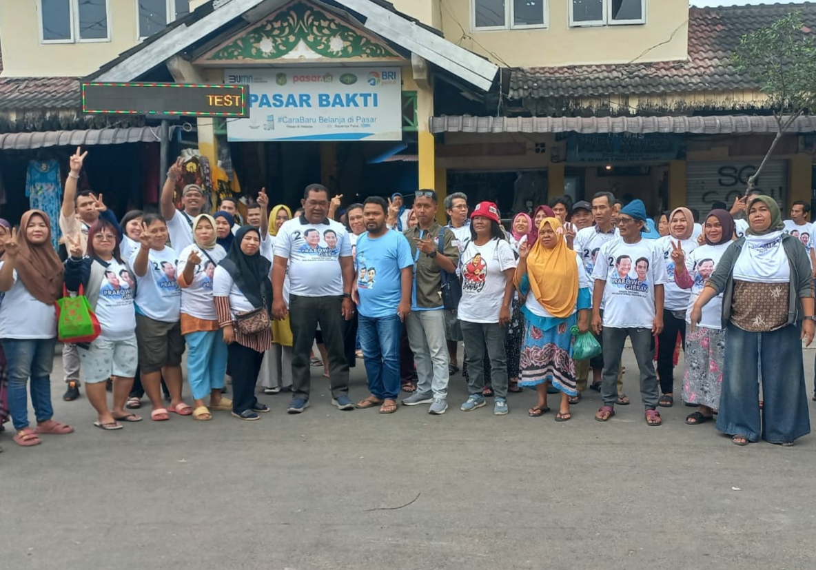 MEDAN – Relawan Bobby Nasution (Re-Born) mensosialisasikan program Prabowo – Gibran kepada para pedagang Pasar Bhakti, Minggu (14/1/2024). Para pedagang pun optimis pasangan nomor urut 2 dalam kontestasi Pilpres 2024 itu membawa Indonesia semakin maju.