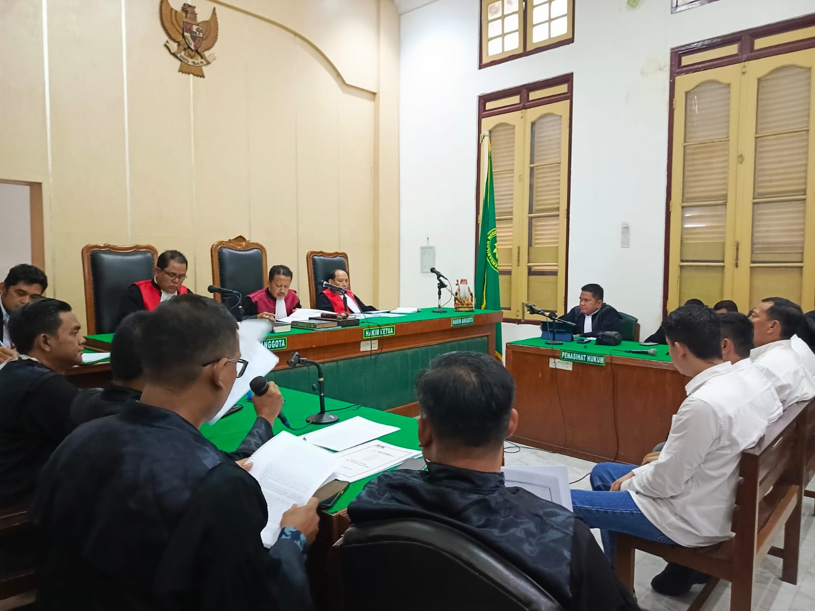 MEDAN l Wakil Ketua DPRD Labuhanbatu Yusrial Suprianto Pasaribu menjalani sidang perdana dalam perkara suap yang juga menjerat Bupati Labuhanbatu Erik Adtrada Ritonga di Ruang Cakra 9 Pengadilan Tipikor Medan, Senin (1/4/2024).