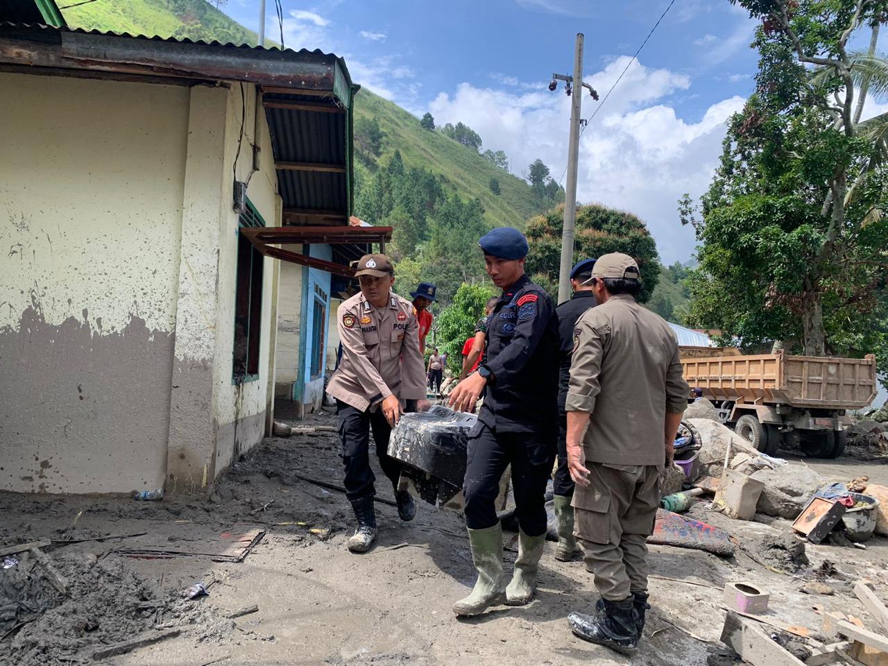 Personel Polisi dan TNI Bantu Bersihkan Rumah Warga Terdampak Longsor di Humbahas
