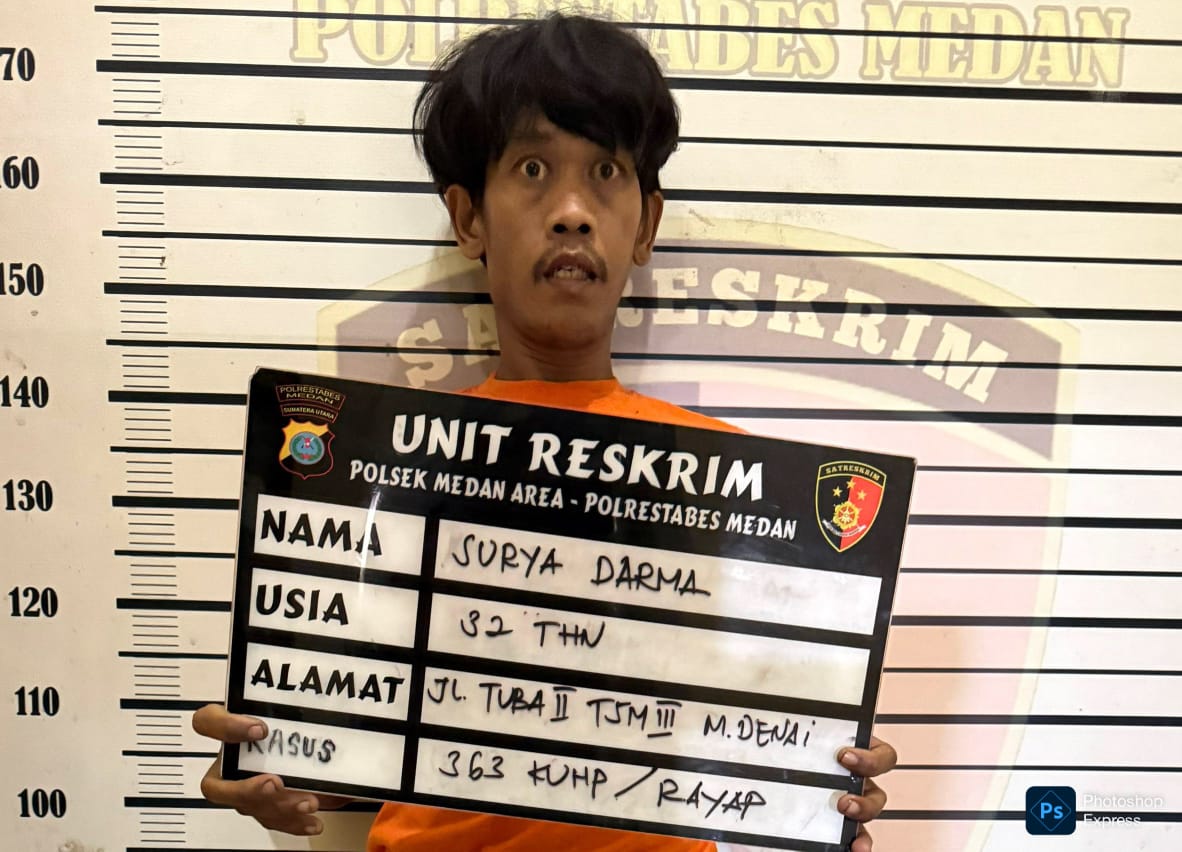 Berdasarkan laporan korban, jajaran Polsek Medan Area yang tergabung dalam Unit Reskrim langsung bergerak melakukan penyelidikan. Dalam waktu kurang dari 24 jam, pada Minggu (2/11/2025) dini hari pukul 03.00 WIB, tim berhasil mengidentifikasi dan mengamankan tersangka utama, Surya Darma, yang ternyata merupakan tetangga korban sendiri.