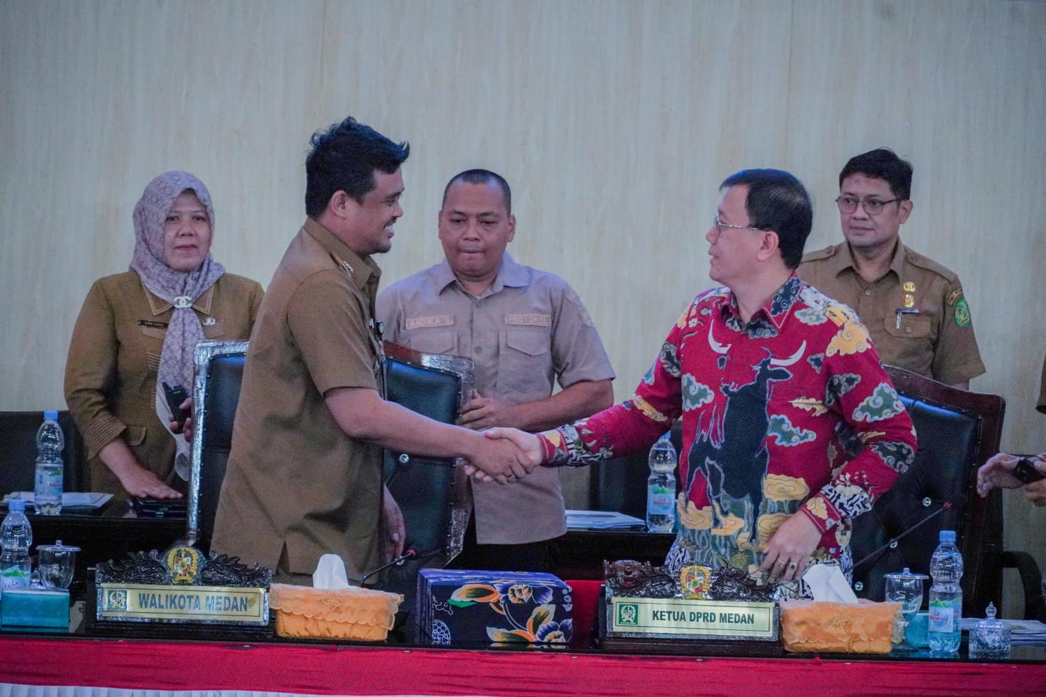 Terakhir, atas nama Pemko Medan, Bobby menyampaikan terima kasih dan apresiasi kepada DPRD Medan dan semua pihak yang ikut serta berkontribusi.
