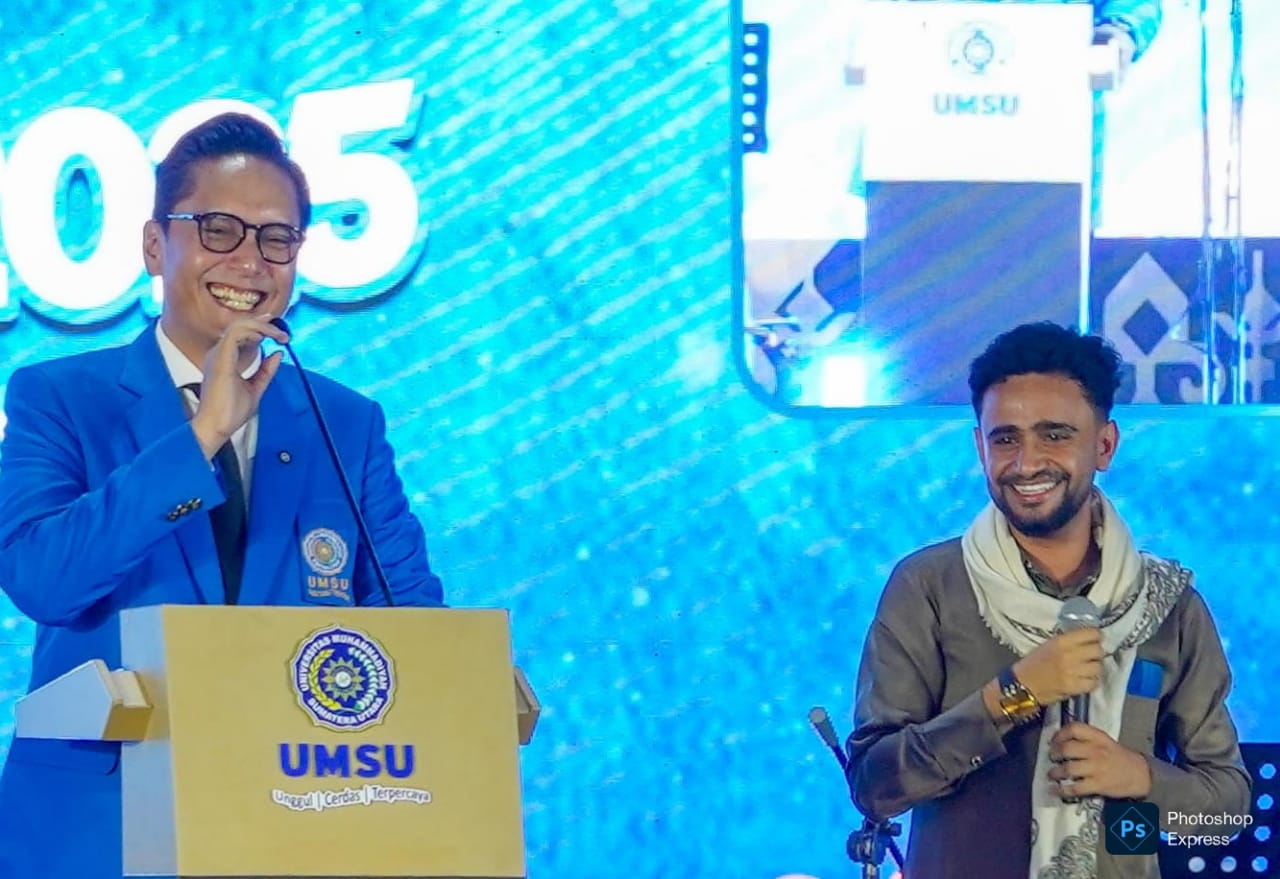 Acara semakin meriah dengan penampilan pantun dari dua mahasiswi viral, Diana (asal Thailand) dan Laura, yang mencerminkan semangat keberagaman dan toleransi di UMSU.