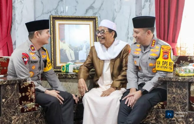 Momen kebersamaan ini menjadi ajang dialog informal antara aparat kepolisian dengan para ulama dan santri.