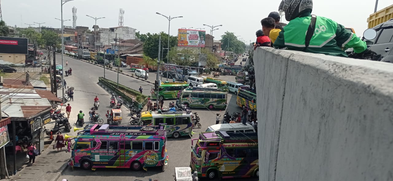 Sejumlah Bus Antar Kota Blokir Kawasan Simpang Pos, Jalan Jadi Macet