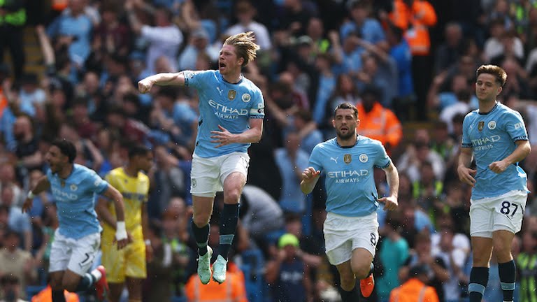 Kevin De Bruyne berhasil memperkecil ketinggalan pada menit 33. Selang tiga menit kemudian giliran O Marmoush menyamakan kedudukan ketika meneruskan umpan I Gundogan.