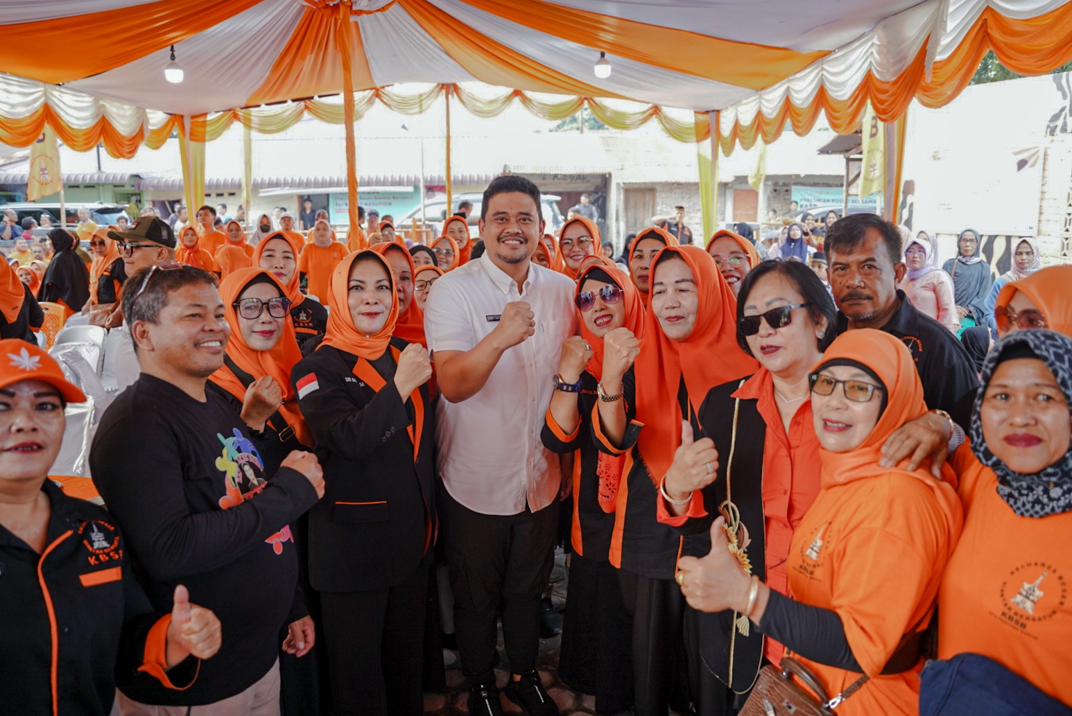 Ketua KBSB, Sri Rahmawati terlihat senang sebab Bobby Nasution langsung hadir dan menyapa para relawan di Siantar.