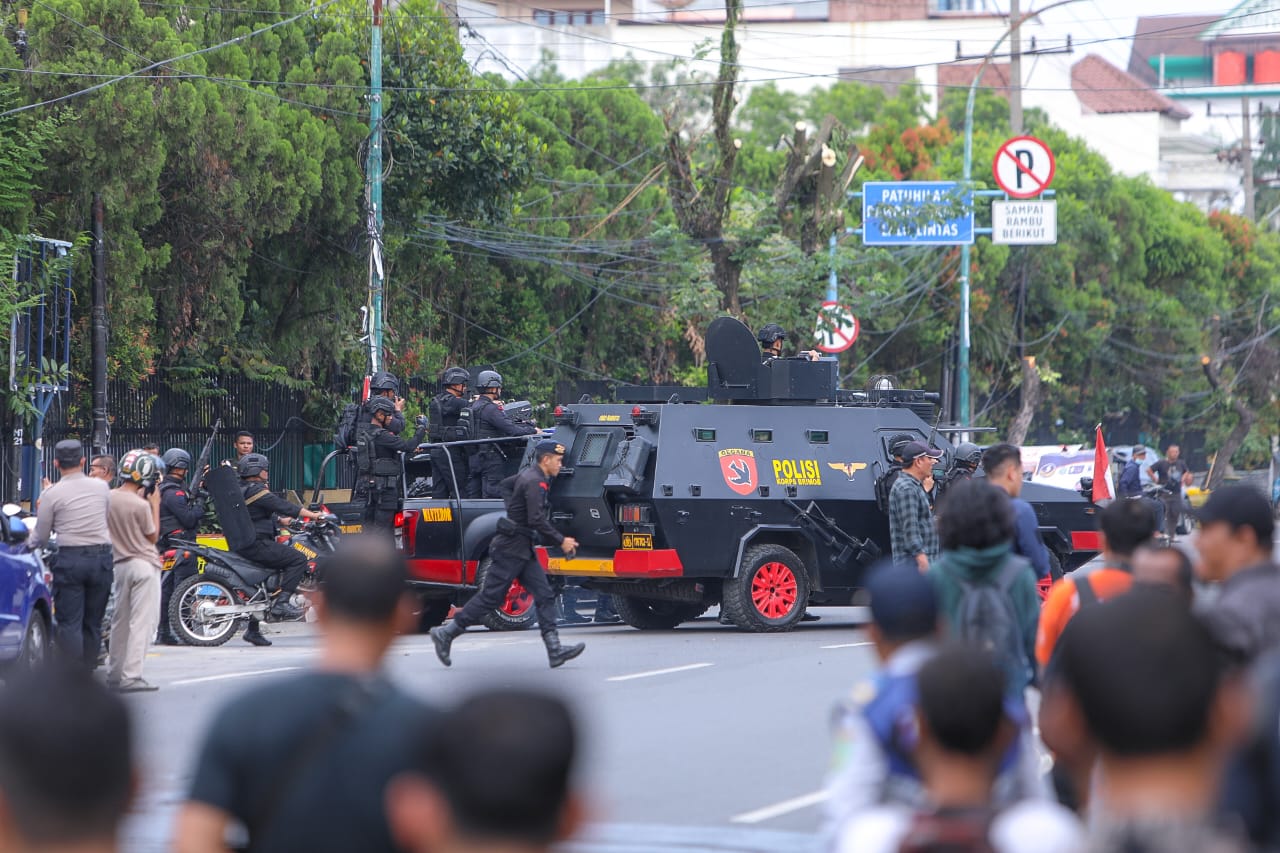 MEDAN – Personel Polda Sumut memantapkan simulasi pengamanan Pemilu 2024 di Kantor KPU Sumut, Jalan Perintis Kemerdekaan Medan, Jumat (13/10/2023).