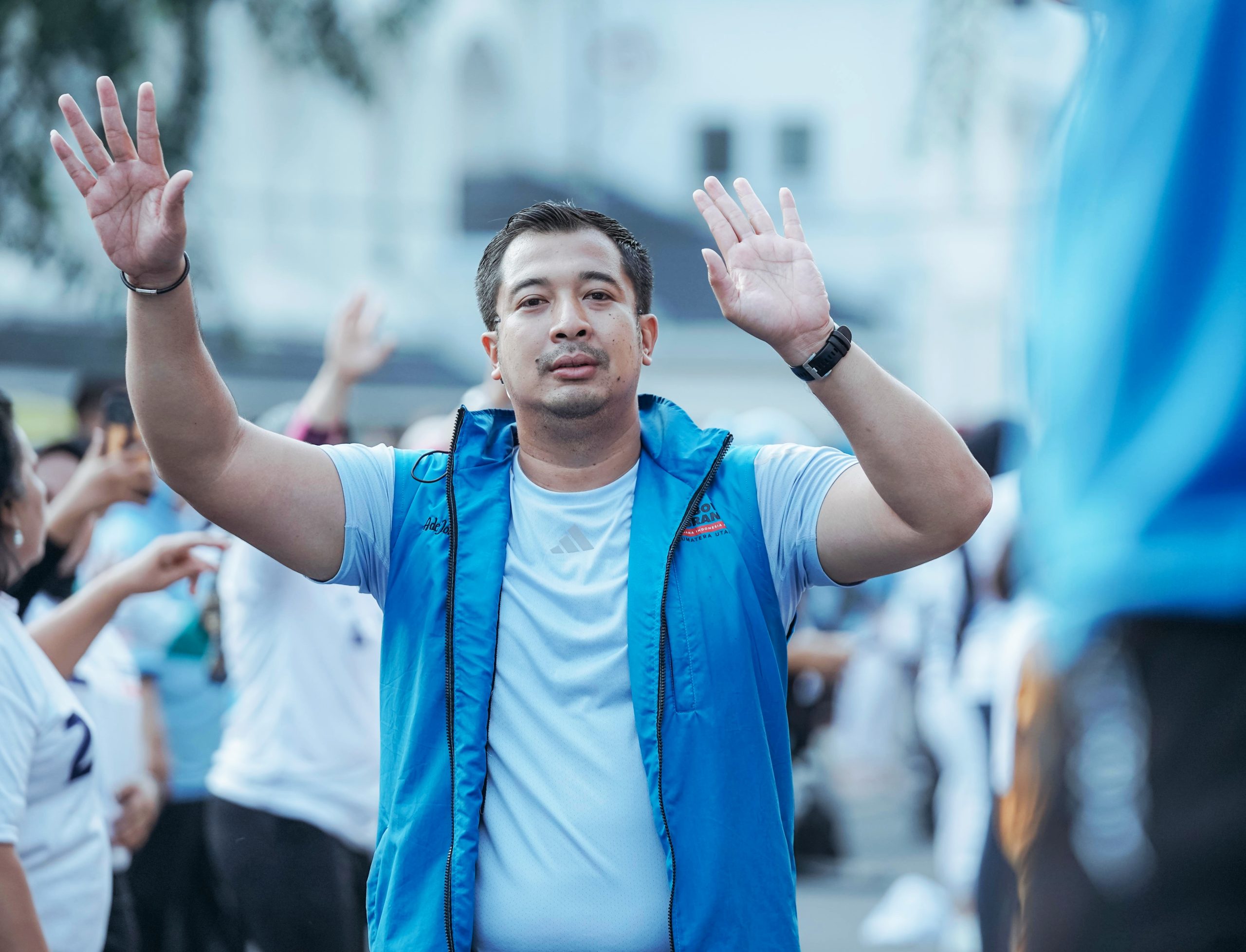 Tampak hadir Ketua TKD Prabowo – Gibran Sumut, Ade Jona Prasetyo. Jona mengaku sangat bahagia melihat jumlah peserta yang hadir. Peserta begitu membludak dan sangat antusias mengikuti rangkaian kegiatan. “Dengan semangat politik riang dan gembira, mari kita birukan Sumatera Utara,” ungkap Jona.
