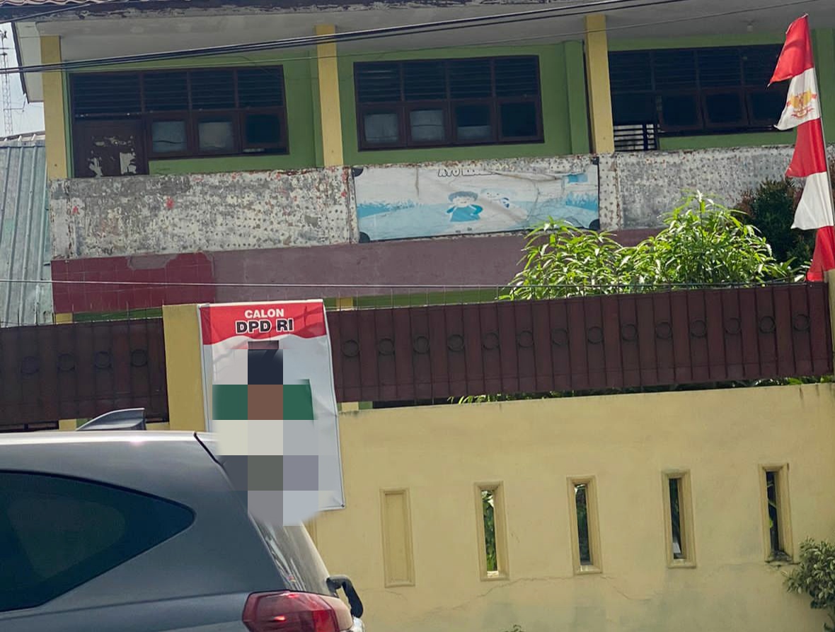 MEDAN – Salah satu calon anggota DPD diduga melanggar aturan kampanye dengan memasang Alat Peraga Kampanye (APK) di lingkungan sekolah.